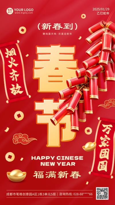 春节高端大气祝福海报