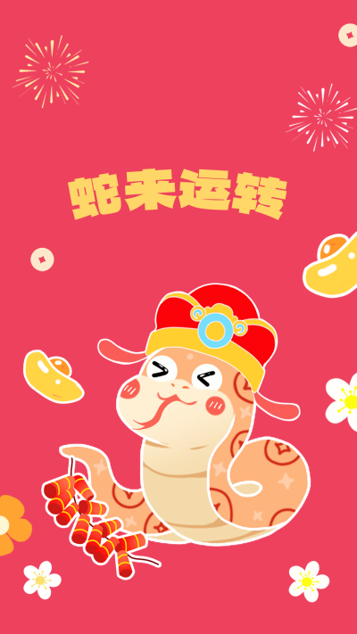 可爱卡通手绘蛇年祝福手机壁纸
