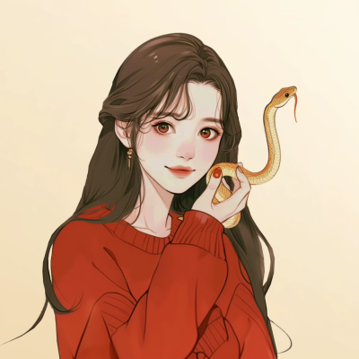 蛇年新年节日喜庆可爱女生手绘卡通头像
