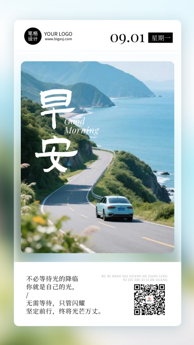 九月你好早安日签简约手机海报