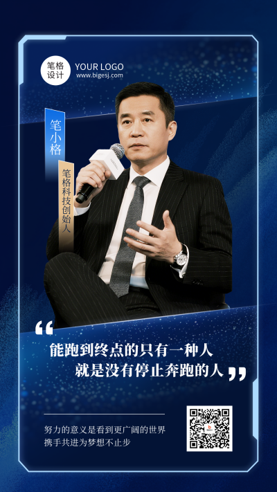 讲师介绍人物励志简约名言蓝色海报