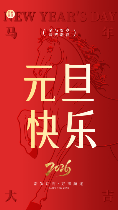 红色喜庆元旦祝福海报