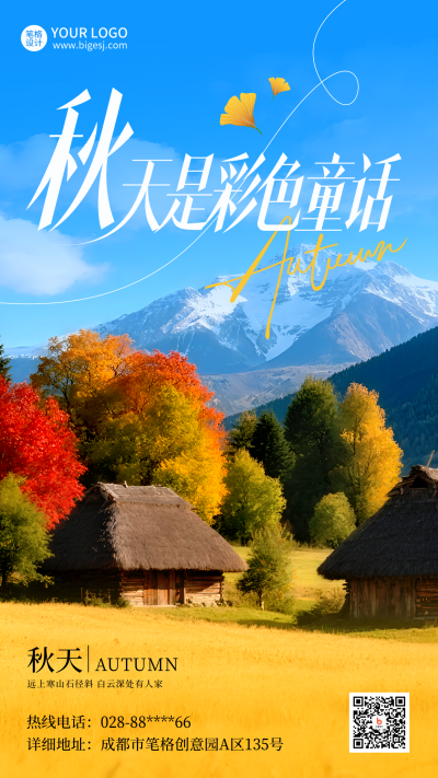 秋季风景日签问候语实景海报