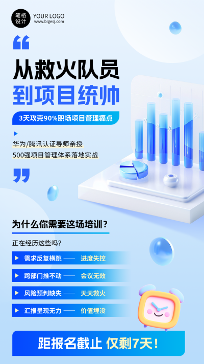 项目管理培训蓝色简约宣传海报