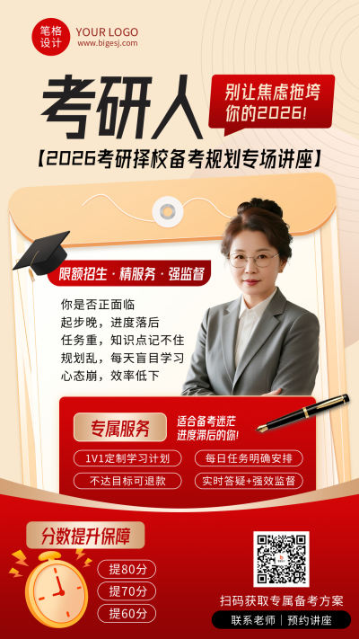 红色简约考研讲座宣传海报