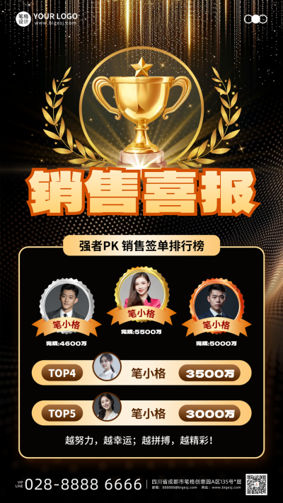 销售喜报排行榜手机宣传海报