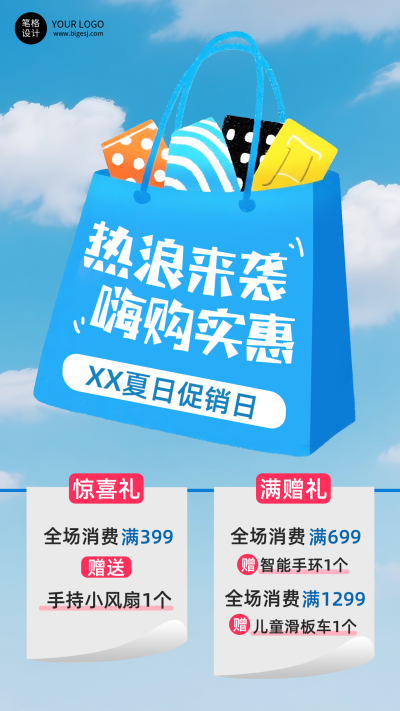 购物促销简约手绘活动宣传海报